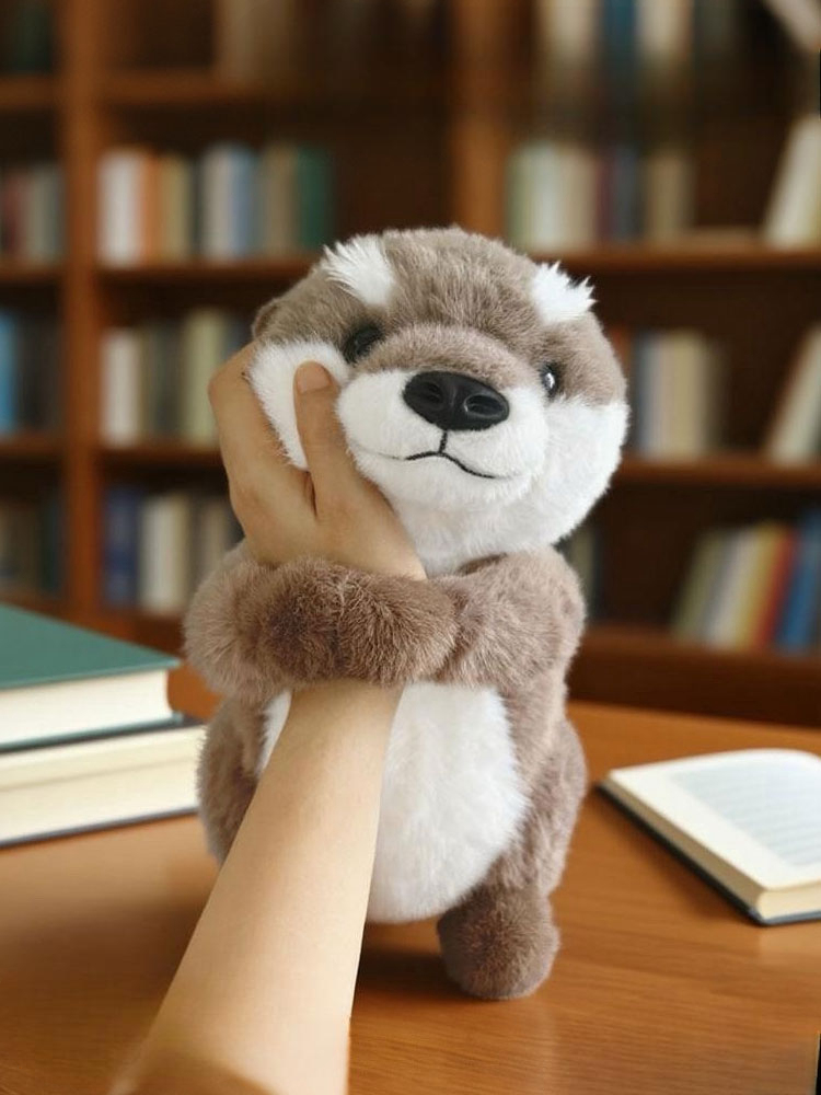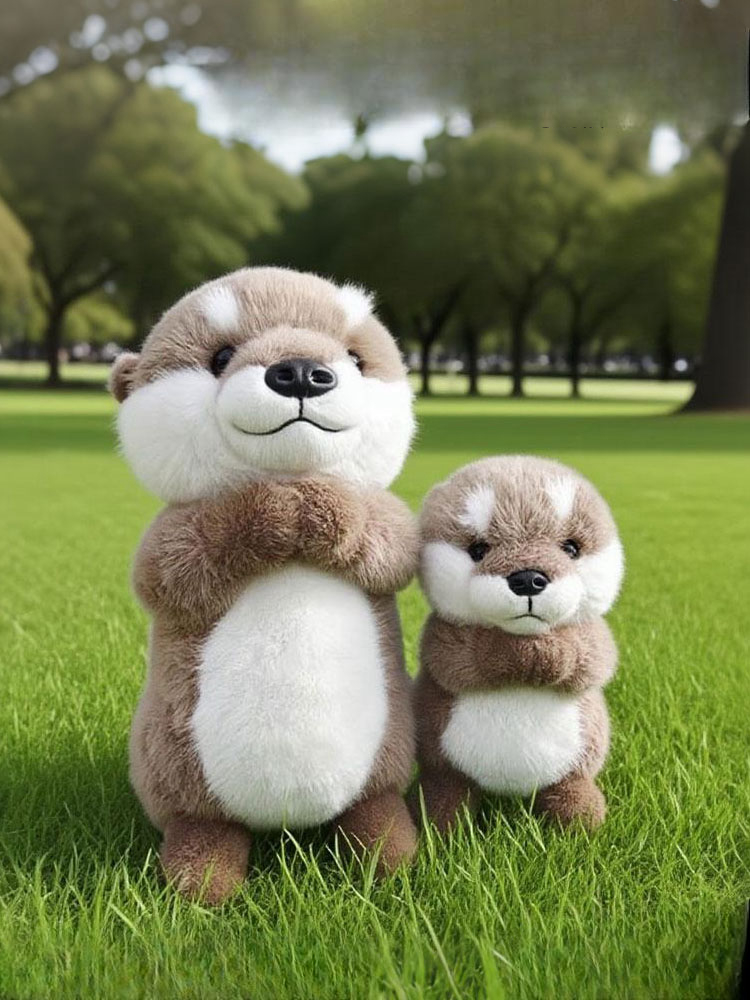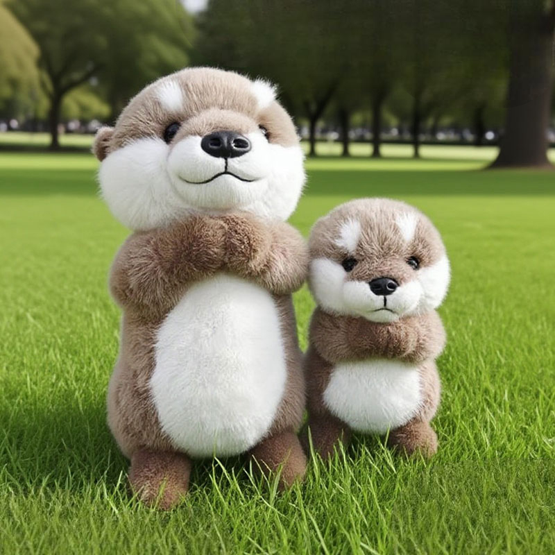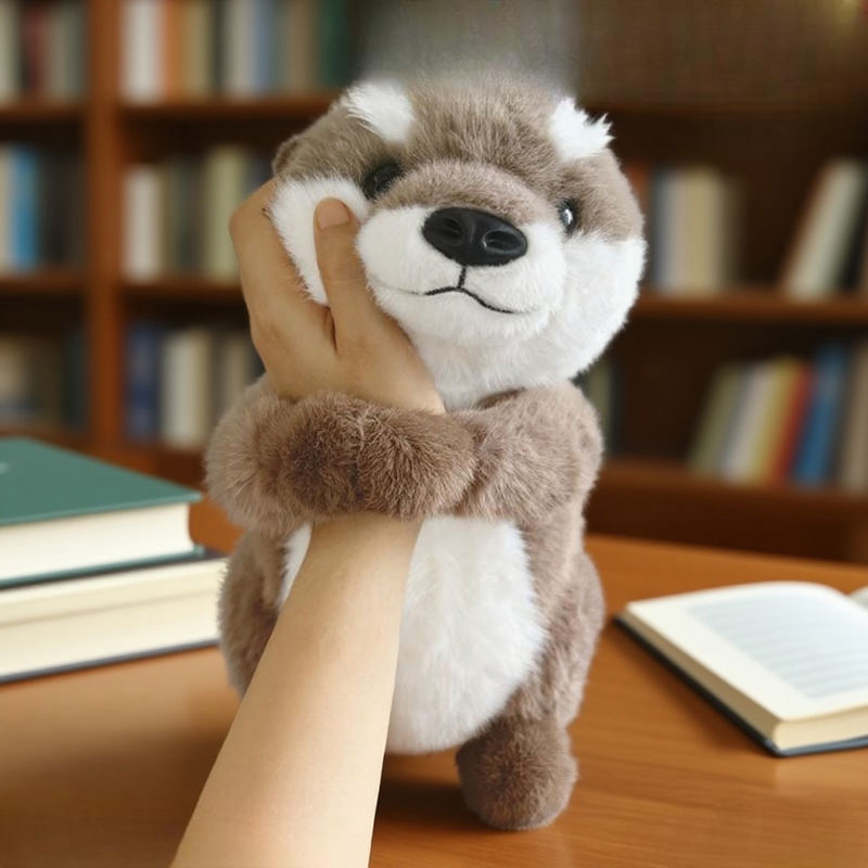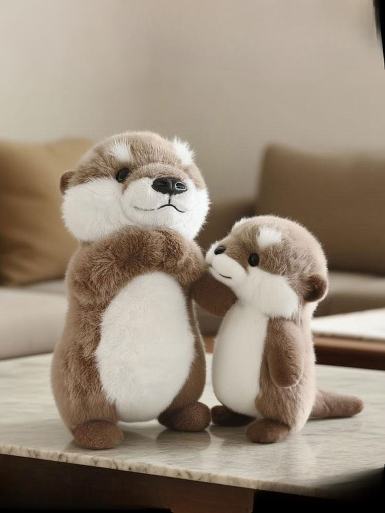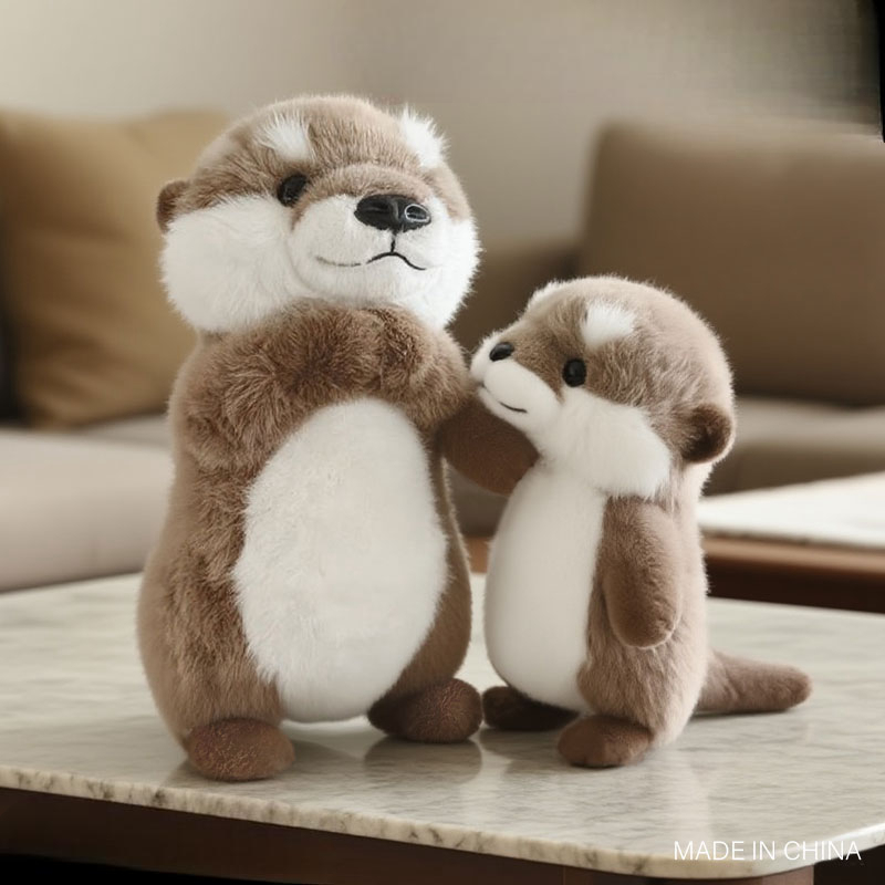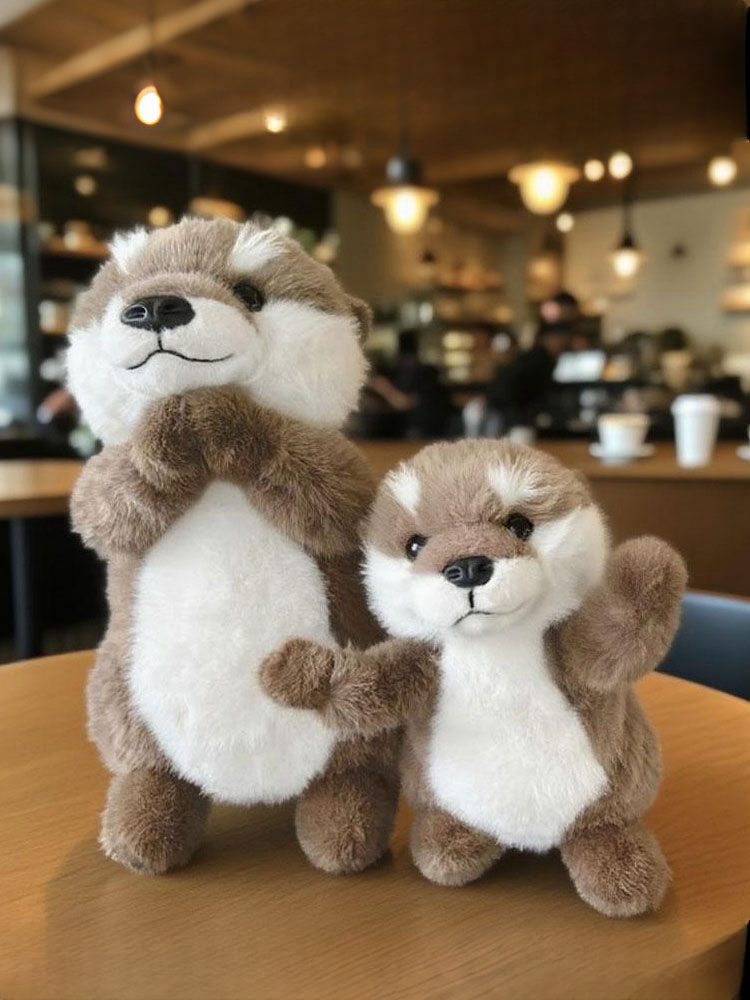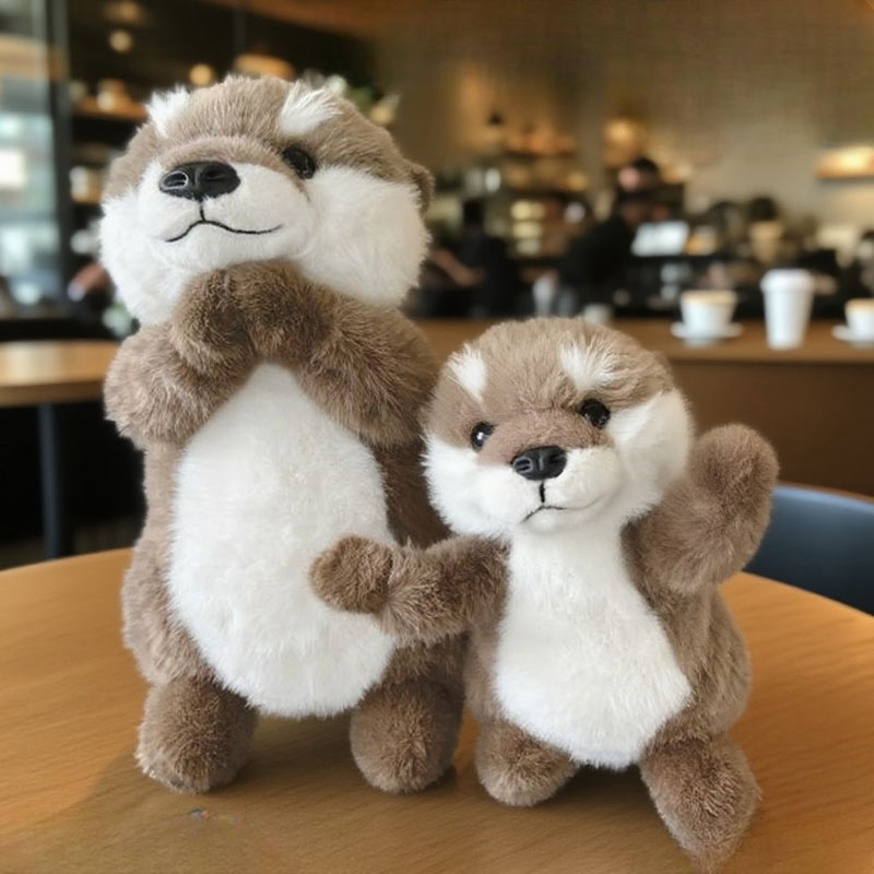 A small raccoon plush toy with a soft, fluffy texture and a neutral white background. The plush features warm brown fur on the head, back, arms, and legs, with contrasting soft white fur on the cheeks and belly. It has a rounded body shape, tiny stitched smile, small black nose, and glossy dark eyes that give it a gentle, friendly expression. The compact upright design and balanced color contrast make it suitable for gift shops, nursery décor, or woodland-themed plush collections.