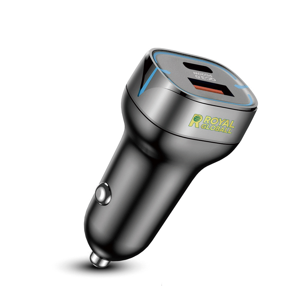 Charge your devices on the go with the Royal Global Dual USB Car Charger. Designed for modern travelers, this sleek and compact charger features dual USB output ports, including a QC 3.0 fast-charging port for rapid power delivery.