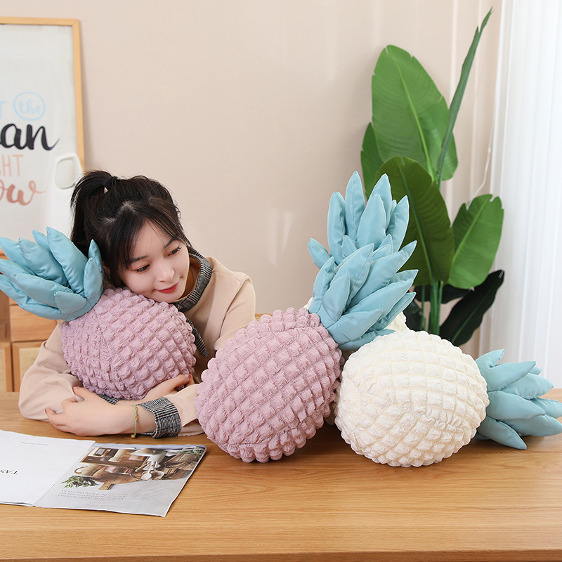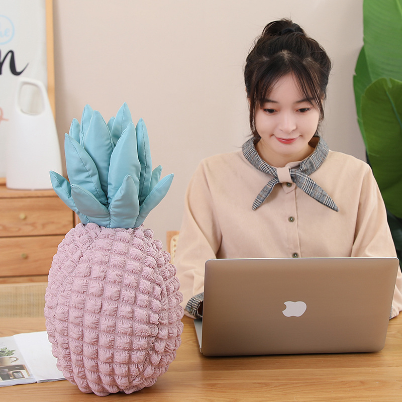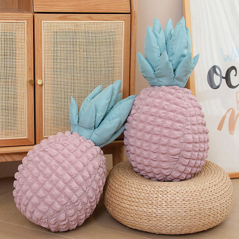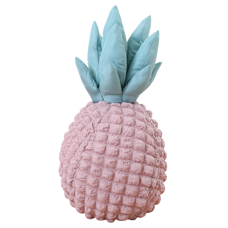 Add a sweet tropical touch to your space with the Blush Pineapple Plush Cushion. Designed in a charming pineapple shape, this soft decorative pillow features a textured blush-pink body and smooth pastel blue leaves for a playful yet elegant look.