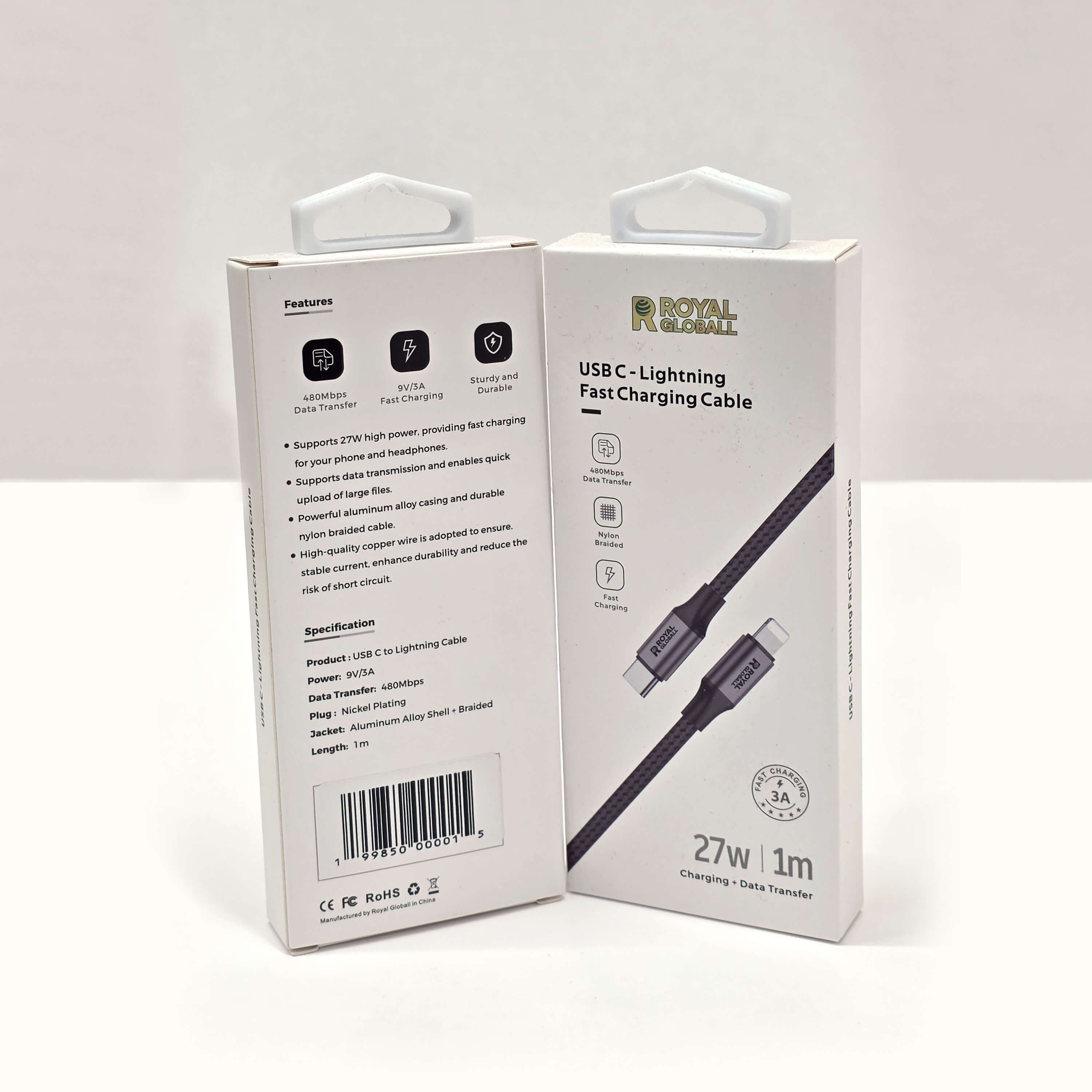 Royal Globall USB-C Lightning Fast Charging Cable 27 W / 1m Charging + Data Transfer Fast Charging 3A