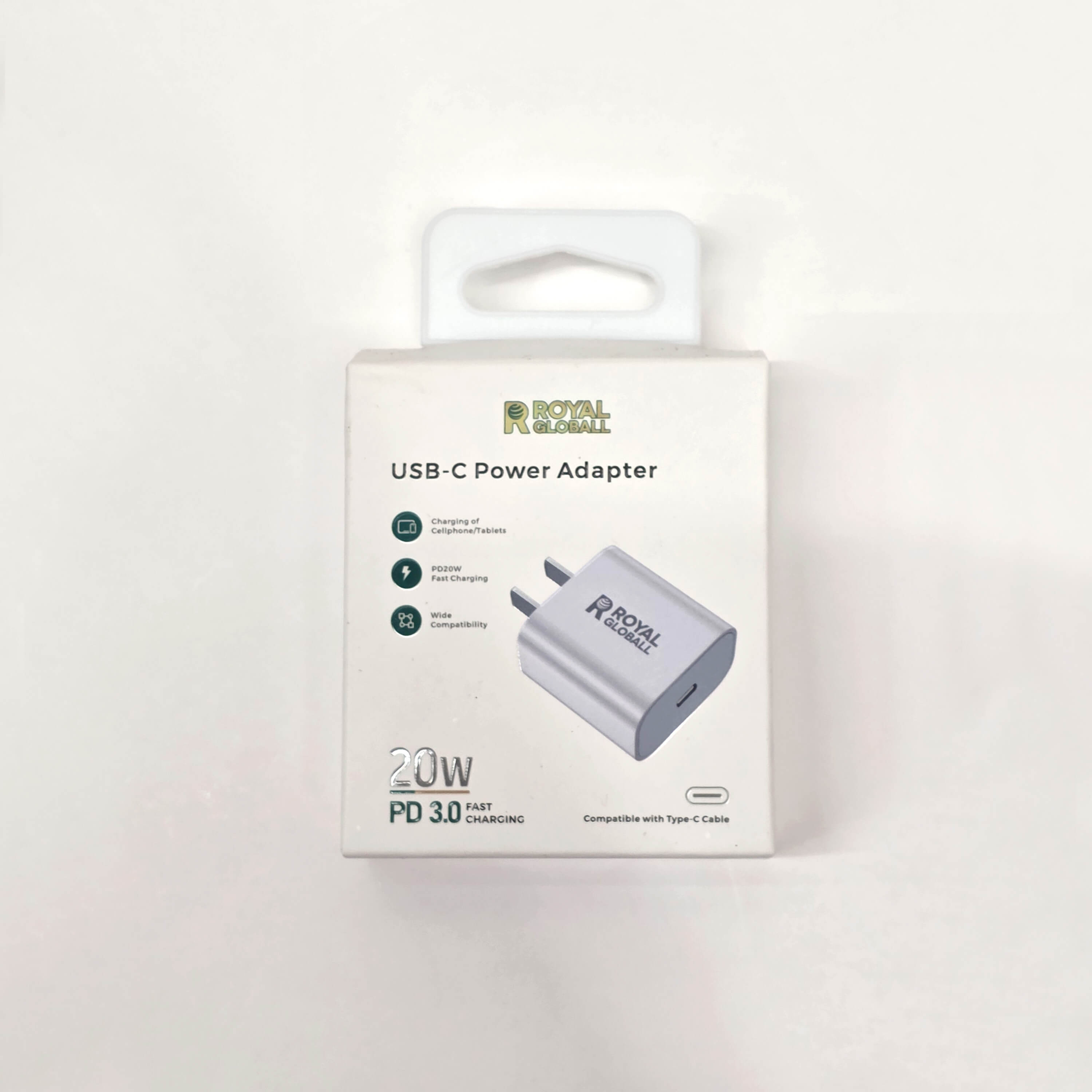 Royal Globall USB-C Power Adapter 20W PD 3.0 Fast Charging Compatible with Type-C Cable